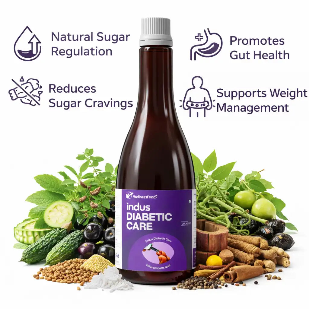 Indus Diabetic Care Blends Karela, Jamun, Gudmar, And Methi To Enhance Insulin Sensitivity, Support Pancreas Function, And Maintain Healthy Blood Sugar Levels Without Harsh Chemicals Or Side Effects. Perfect For Daily Sugar Balance.
